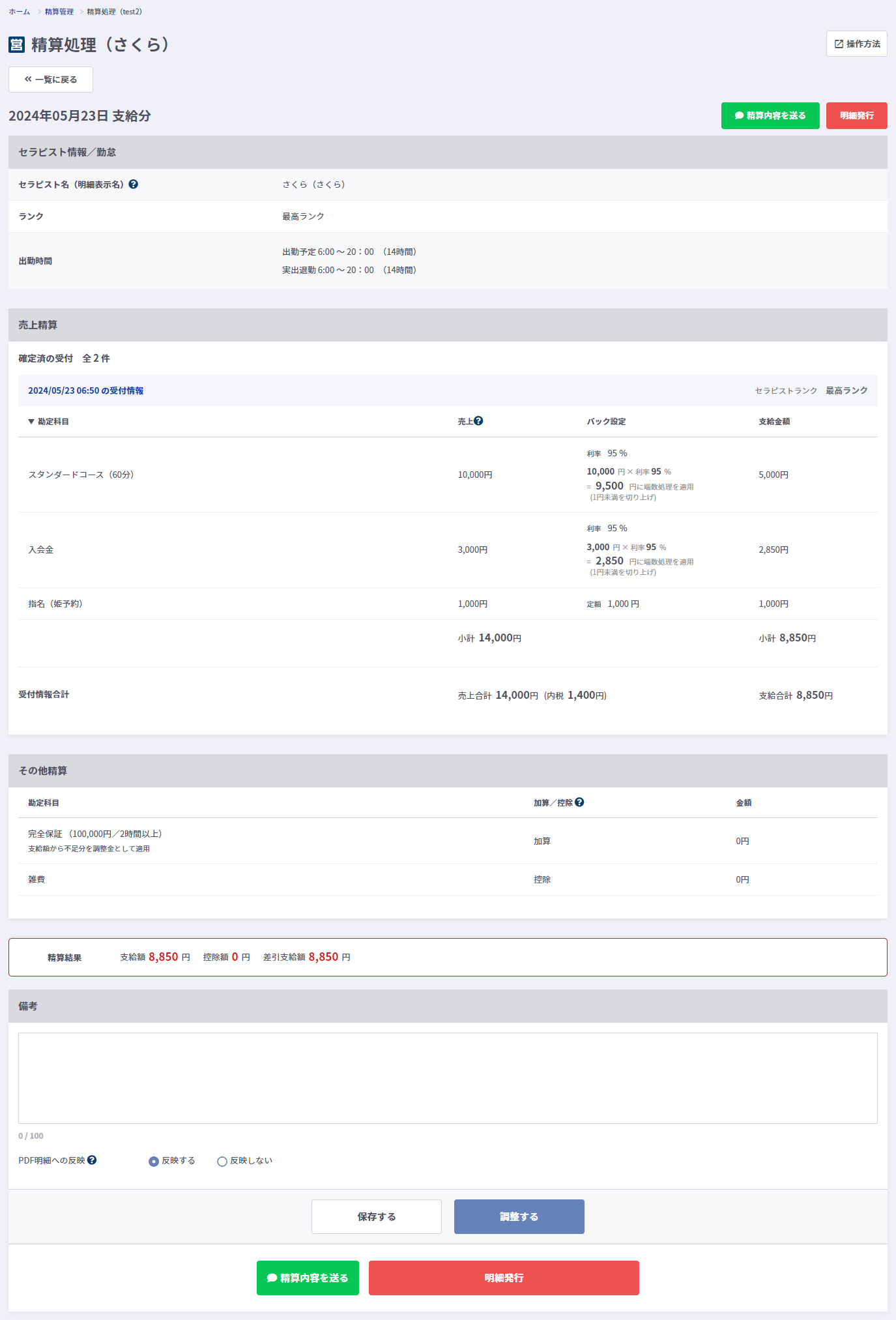 確定した精算内容で明細発行ができます。