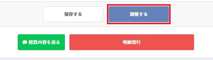 1.確定した精算処理の「詳細」を開き、ページ下部の調整するボタンをクリックします。