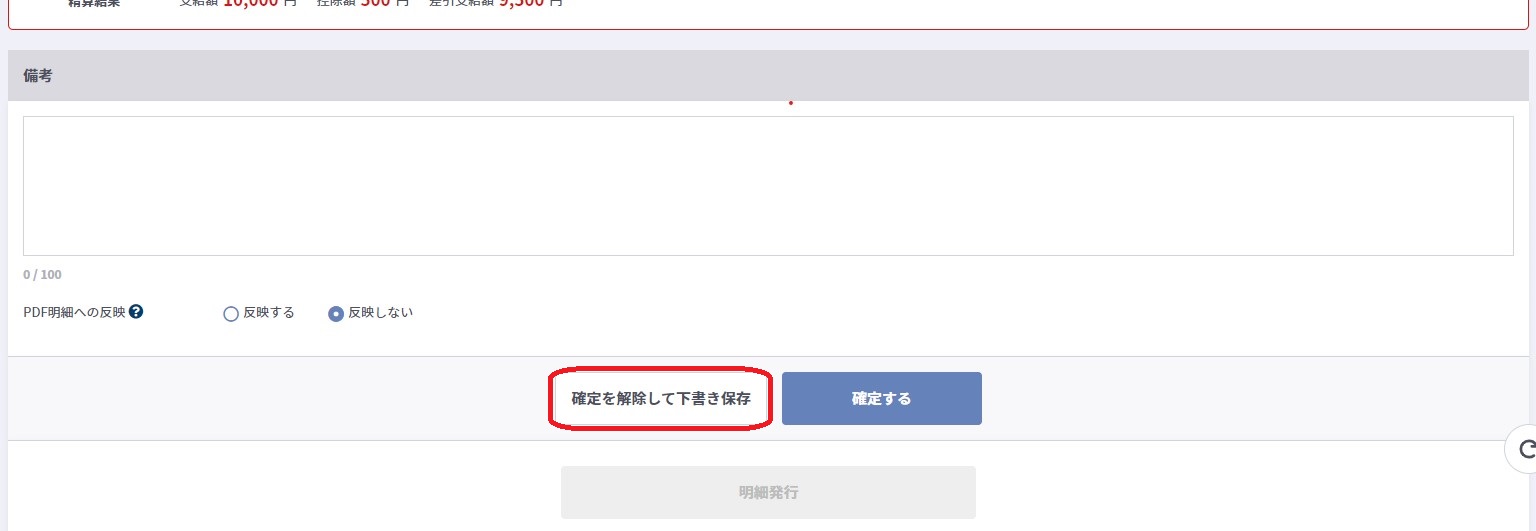 2.調整ページに遷移後、ページ下部にある確定を解除して下書き保存ボタンをクリックすることで確定解除となります。