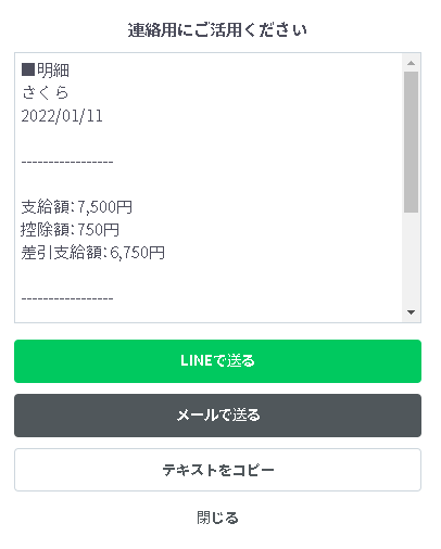 精算内容をLINEやメール送信、またはコピーすることができます。