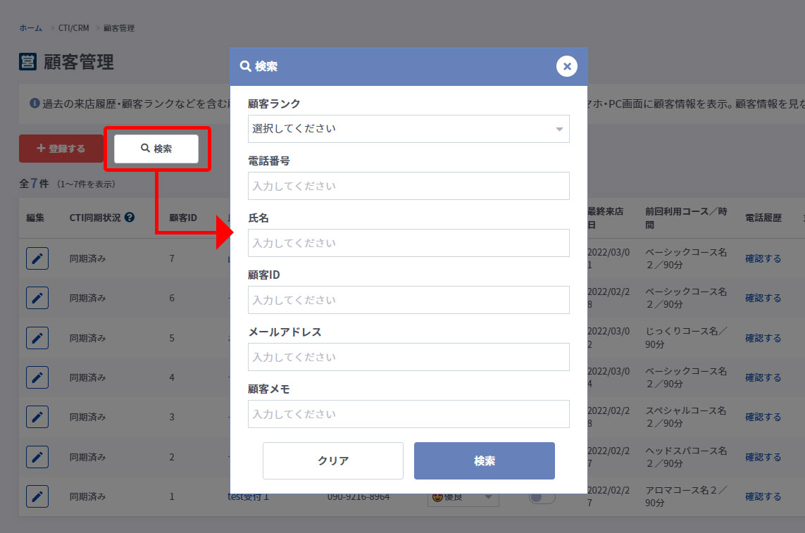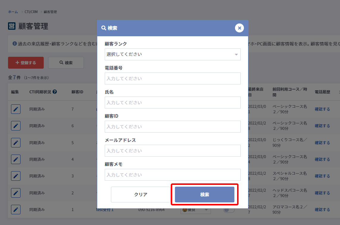 顧客情報を様々な条件で検索できます。