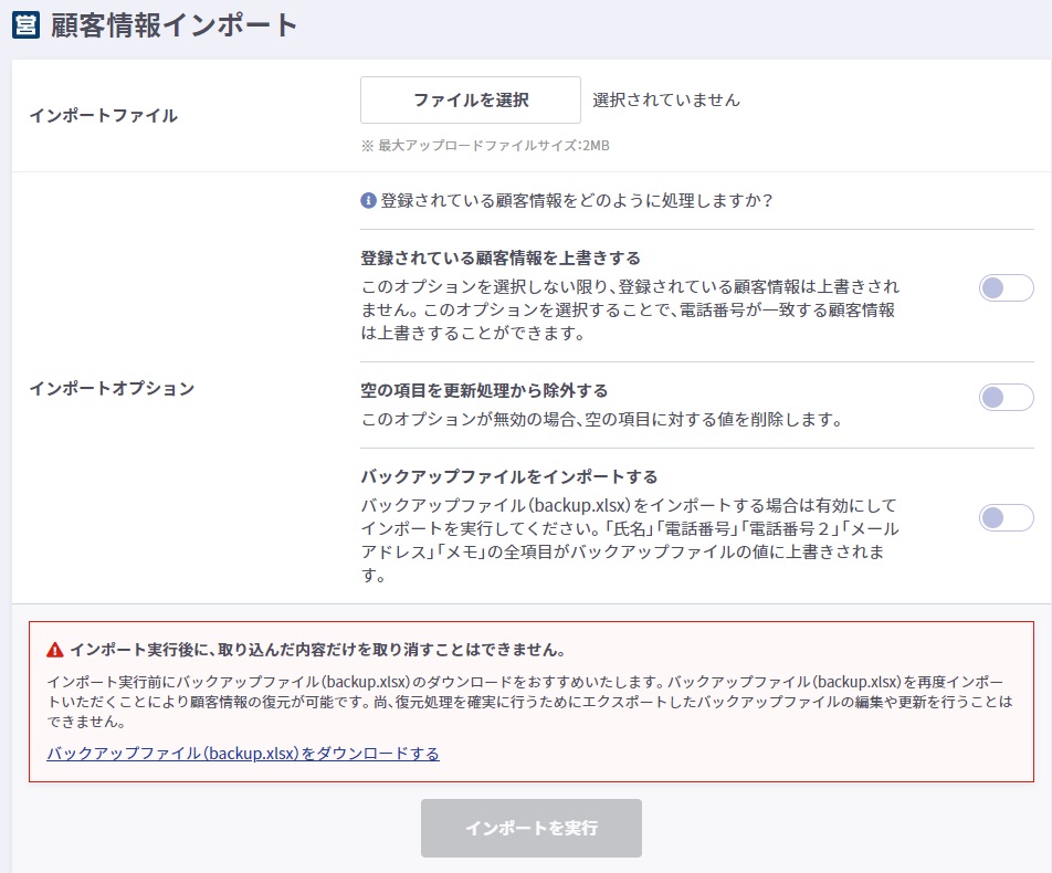 - 顧客情報インポート画面