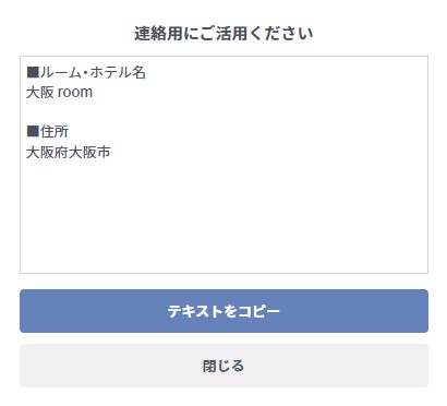 ルーム・ホテルの住所が表示されます。