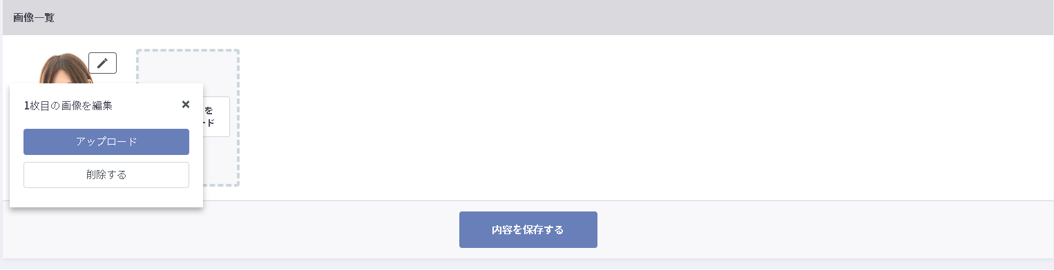 | 編集メニュー | 変更したい画像の右上のをクリックすると、編集メニューが表示されます。 |